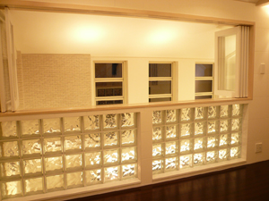 ように開閉できる建具と光の演出が美しいガラスブロックを壁にしてます。