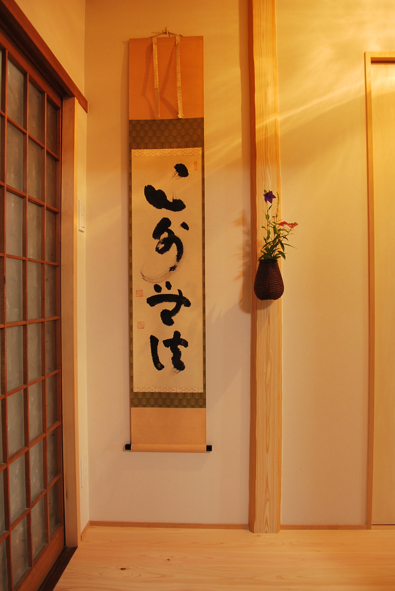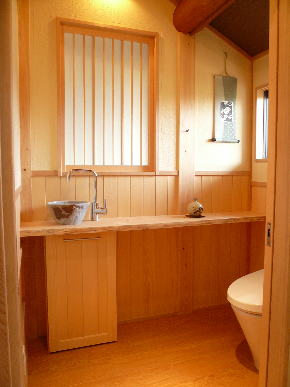 トイレ空間のリフォーム。もてなしの空間として、花器が冴えるサニタリーは美しく、和の美である。