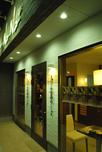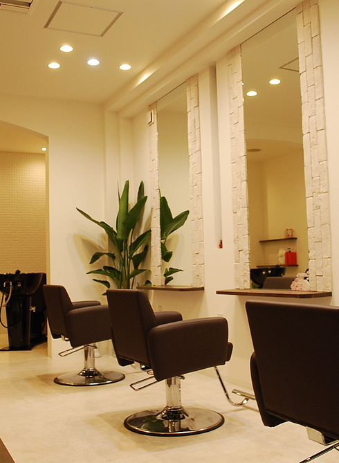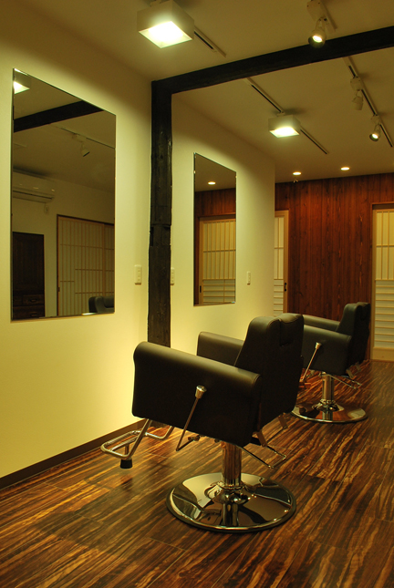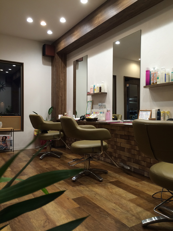 平和堂石山店に入っていた美容室が新装オープン。店内照明は明るく、且つ落ち着けるダークブラウンを基調とした。