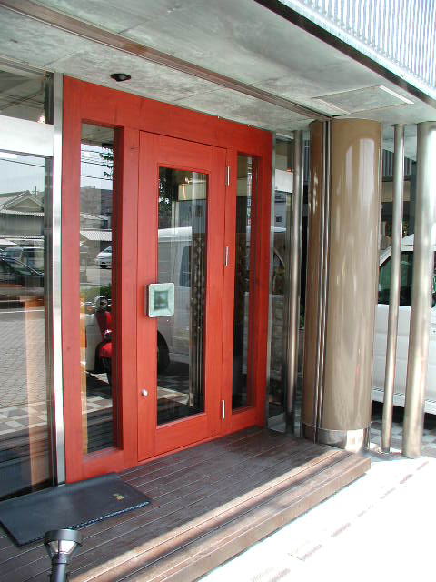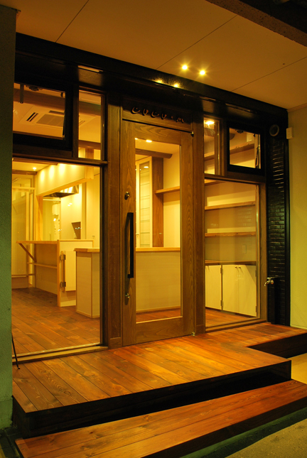RC造の建物1階部分を店舗に。 店舗スペースは広くゆったりとしてしてますが、余裕をもたせてイスは2席。 明るい店内としながらも、床は濃いステインの無垢材を使用し落ち着いた感じに。