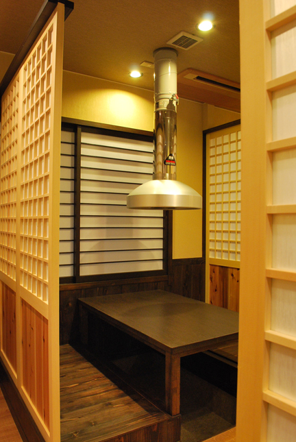 60人以上の団体のお客様をもてなせる大部屋を造り、カラオケ設備を整え、数人で来店されるお客様はテーブル席も選んでいただけるようプランニングしている。
