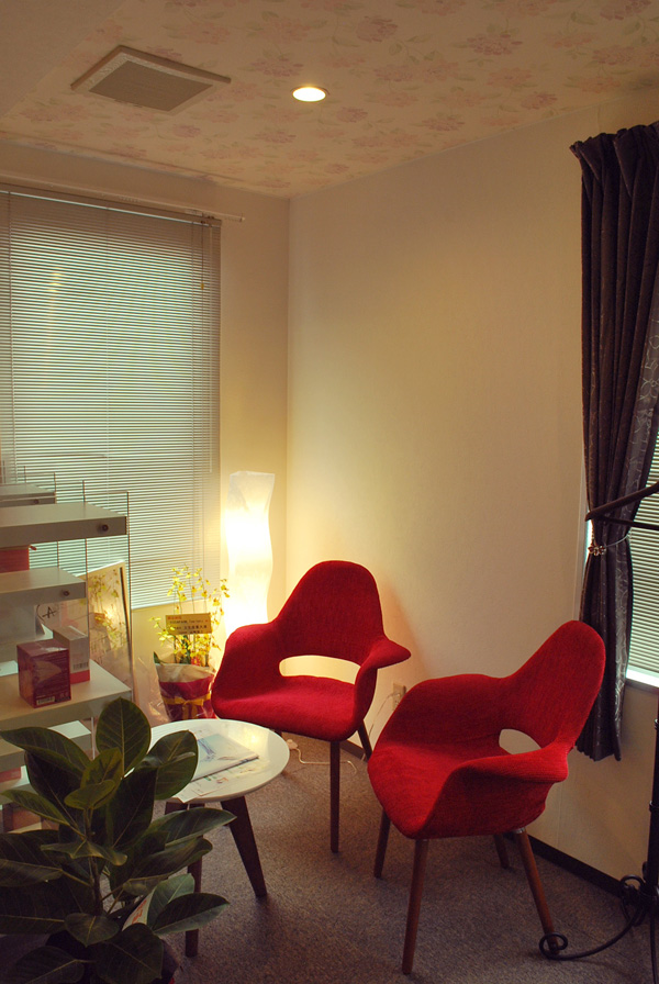 小野駅からすぐの自宅サロン。壁一面に色を入れることで、お洒落なサロンに仕上がりました。